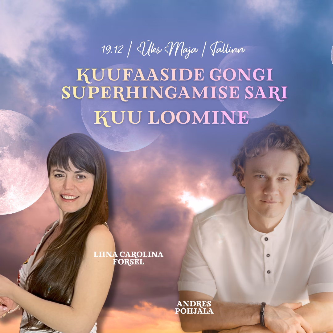 KUUFAASIDE GONGI SUPERHINGAMISE SARI: Täiskuu Gongi Superhingamine 📍 Koht: Üks Maja Valdeku 66, Tallinn.🎟 Piletid: Tavapilet: 39 € | Sõbrapilet (kahele): 64 € Kohtade arv on piiratud, pileti ost garanteerib koha. 🌕 Täiskuu mõju: 4 rännakut – 4 kuufaasi – 1 sügavalt toetav tsükkel Meie keha, meel ja emotsioonid liiguvad lainetena. Nii nagu kuu taevas. […]